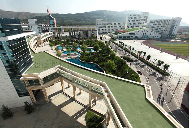 2.其復雜程度:主要有1.在用地緊張前提下,要做到校園布置合理、又要展現(xiàn)百年名校的風采及嚴謹育人的作風難度較大。2.綜合辦公樓由圖書閱覽室、行政辦公室及400人報告廳組成,中間由超大尺度(40米×15米)空廊連接構(gòu)成氣勢龐大綜合辦公樓。3.食堂主要由職工、學生餐廳、學生浴室、地下鍋爐房為一體的綜合樓。根據(jù)建設(shè)單位要求,學生就餐人數(shù)為2400名。老師就餐人數(shù)為150名。建筑屋面首次采用斜屋頂,最高處17.36,最低處3.96米,建筑東西長90.5米,地上共三層,地下一層,整個斜屋面采用人造草坪,與自然環(huán)境融為一體。