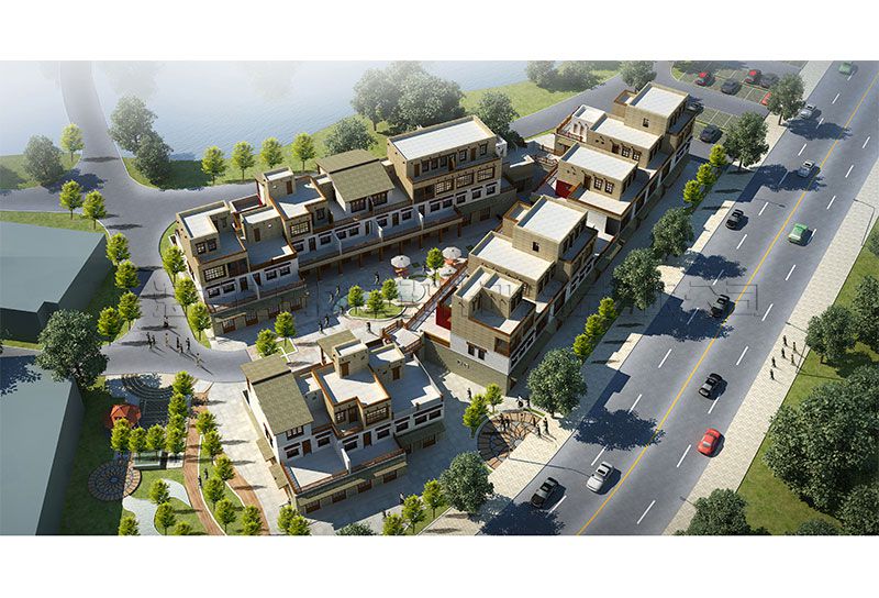 在設(shè)計(jì)中同時(shí)將當(dāng)?shù)匚幕慕ㄖA與中式圍合式院落的精粹完美的融合在一起,呈現(xiàn)出區(qū)域建筑獨(dú)有的風(fēng)范,詮釋居住理想的要素。8個(gè)獨(dú)立的住宅建筑組團(tuán)構(gòu)成的圍合式建筑院落,讓人們的生活能夠享受到屬于自己的相對(duì)獨(dú)立的生活花園景觀,締造居住生活的理想。形成了連續(xù)的商業(yè)步行街,結(jié)合商業(yè)街景觀締造舒適精品的購(gòu)物環(huán)境。使居住商業(yè)配套成為有機(jī)整體,為居民創(chuàng)造良好的居住生活品質(zhì)。