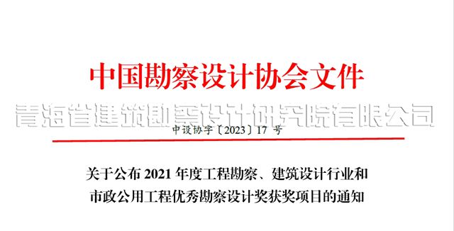 近日,由中國(guó)勘察設(shè)計(jì)協(xié)會(huì)組織開(kāi)展的2021年度工程勘察、建筑設(shè)計(jì)行業(yè)和市政公用工程優(yōu)秀勘察設(shè)計(jì)獎(jiǎng)項(xiàng)目已在中國(guó)勘察設(shè)計(jì)協(xié)會(huì)官網(wǎng)公布,我公司申報(bào)的青海省婦女兒童發(fā)展服務(wù)中心項(xiàng)目在此次評(píng)選活動(dòng)中榮獲部?jī)?yōu)設(shè)計(jì)獎(jiǎng)三等獎(jiǎng)。