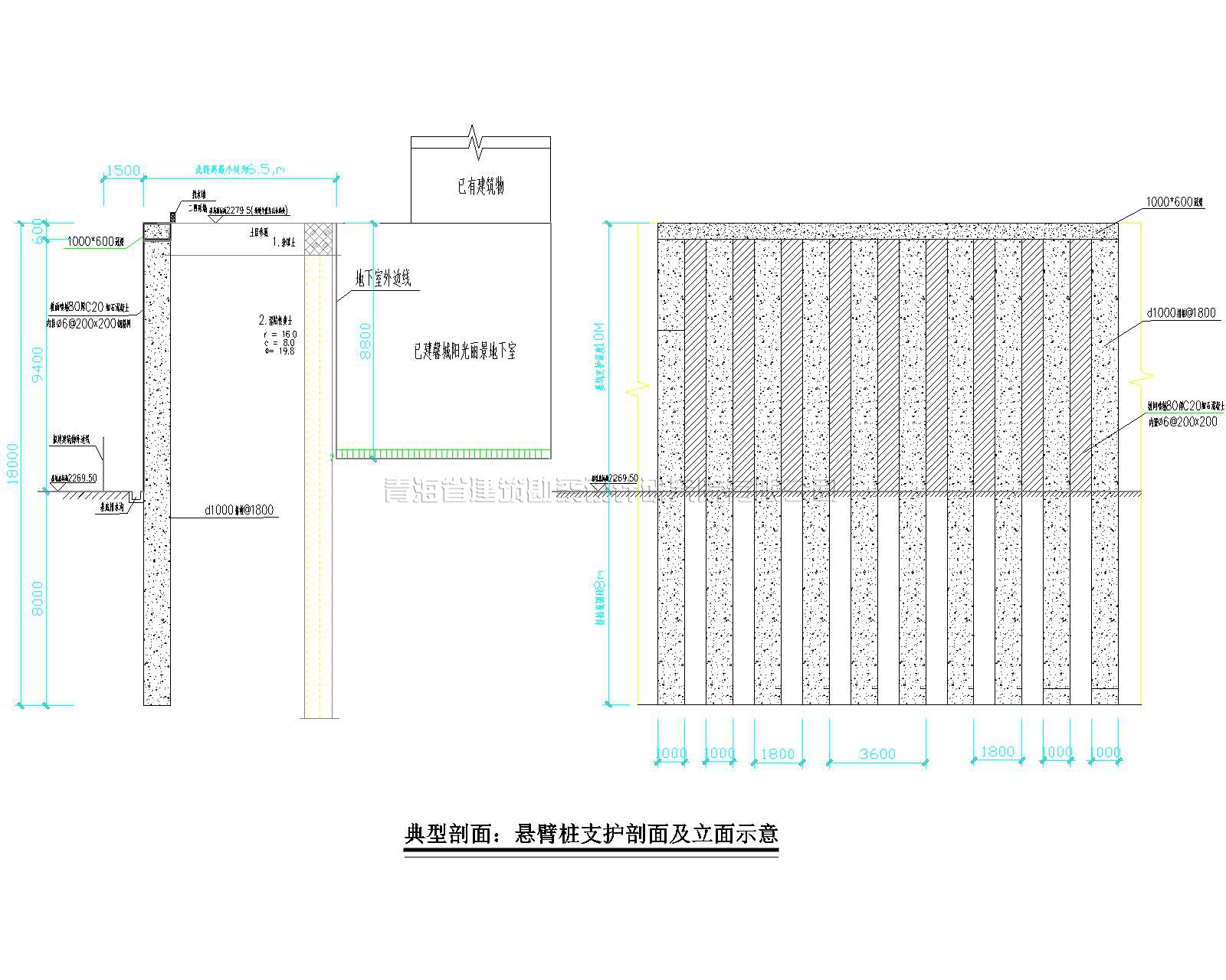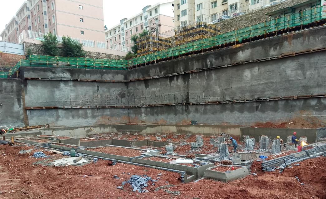根據(jù)現(xiàn)場(chǎng)地質(zhì)條件及基坑周邊環(huán)境,依據(jù)《建筑基坑支護(hù)技術(shù)規(guī)程》(JGJ120-2012)及《濕陷性黃土地區(qū)建筑基坑工程安全技術(shù)規(guī)程》(JGJ167-2009)規(guī)定確定;基坑北側(cè)及西側(cè)基坑深度為8.6-10.0m,支護(hù)結(jié)構(gòu)安全等級(jí)為為二級(jí);其余兩側(cè)(東側(cè)及南側(cè))開(kāi)挖深度在9m-12.1m之間,支護(hù)結(jié)構(gòu)安全等級(jí)為一級(jí)。此次支護(hù)基坑側(cè)壁安全等級(jí)為一級(jí)。本著安全穩(wěn)定、經(jīng)濟(jì)合理的原則,本次基坑支護(hù)設(shè)計(jì)采用排樁+預(yù)應(yīng)力及懸臂樁等綜合性,分段性的支護(hù)支護(hù)方式進(jìn)行?;又ёo(hù)設(shè)計(jì)工作于2018年完成,并于次年通過(guò)青海省建設(shè)工程勘察設(shè)計(jì)咨詢(xún)中心有限公司審查合格。